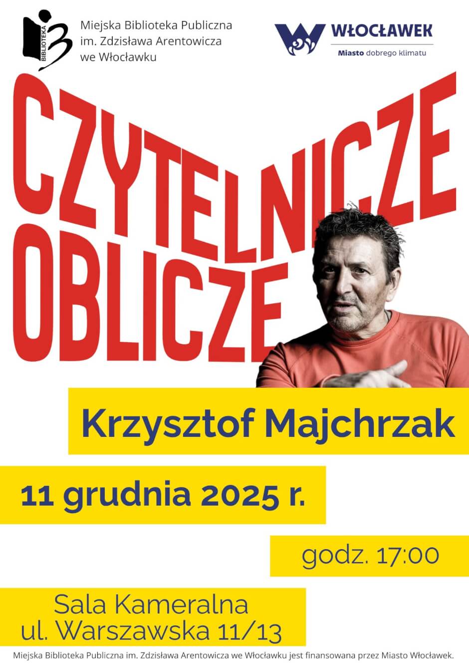 11 grudnia 2025 r. Miejską Bibliotekę Publiczną im. Z. Arentowicza przy ul. Warszawskiej 11/13 odwiedzi Krzysztof Majchrzak – polski aktor filmowy i teatralny, pianista, doktor sztuk teatralnych, wykładowca Akademii Teatralnej w Warszawie.